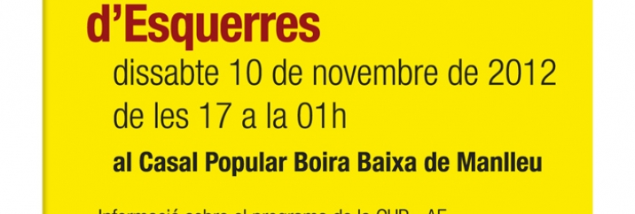 Aquest dissabte 10 de novembre de 2012 el Casal Popular Boira Baixa de Manlleu estarà obert de les 5 de la tarda a la 1 de la nit i, igual que la resta de casals i ateneus dels Països Catalans, aquest dia tots els beneficis aniran destinats a la campanya de la CUP - Alternativa d'Esquerres.