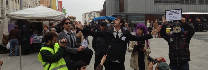 A la performance s'utilitza aquesta idea per mostrar el total desacord a aquesta manera de fer, que ens tenen acostumats els polítics.