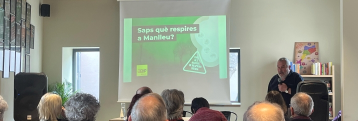 L’acte va comptar amb tres intervencions: Lleonard Sanchez, regidor manlleuenc i conseller comarcal d’Osona de la formació de l’Esquerra Independentista, va presentar una anàlisi exhaustiva de les preocupants dades de la qualitat de l’aire al municipi. Entre novembre de 2024 i febrer de 2025 —un període que comprèn 120 dies—, en 115 jornades es van superar els valors de seguretat de les partícules PM10 fixats per l’Organització Mundial de la Salut (OMS) i, 119 dies, els de les partícules PM2,5.
